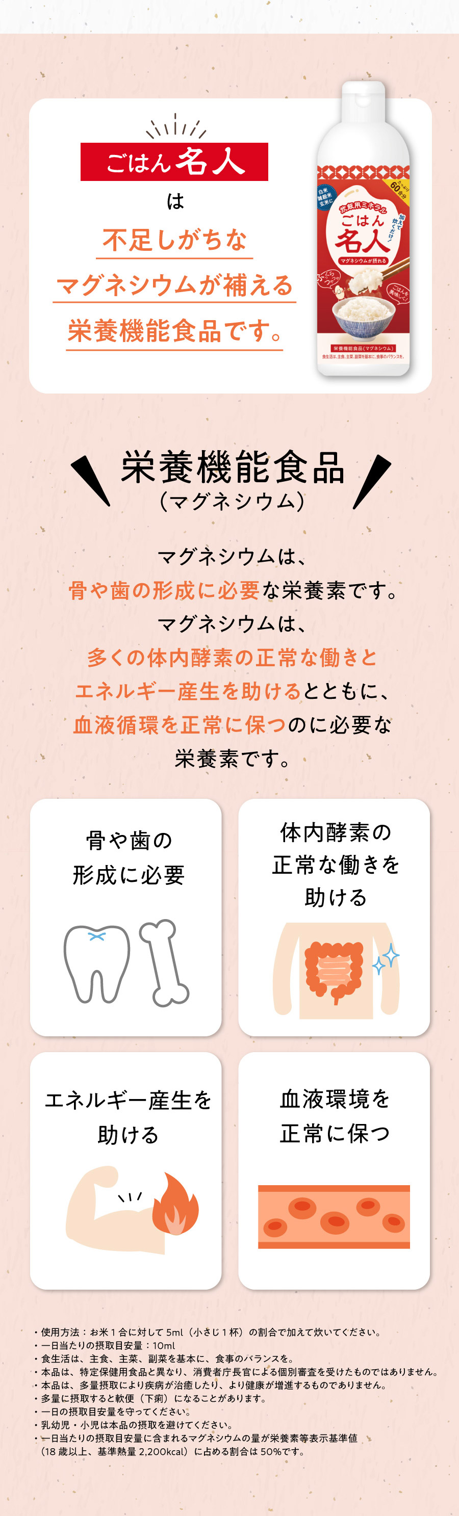 毎日の食事で簡単にマグネシウム補給ができる栄養機能食品です。