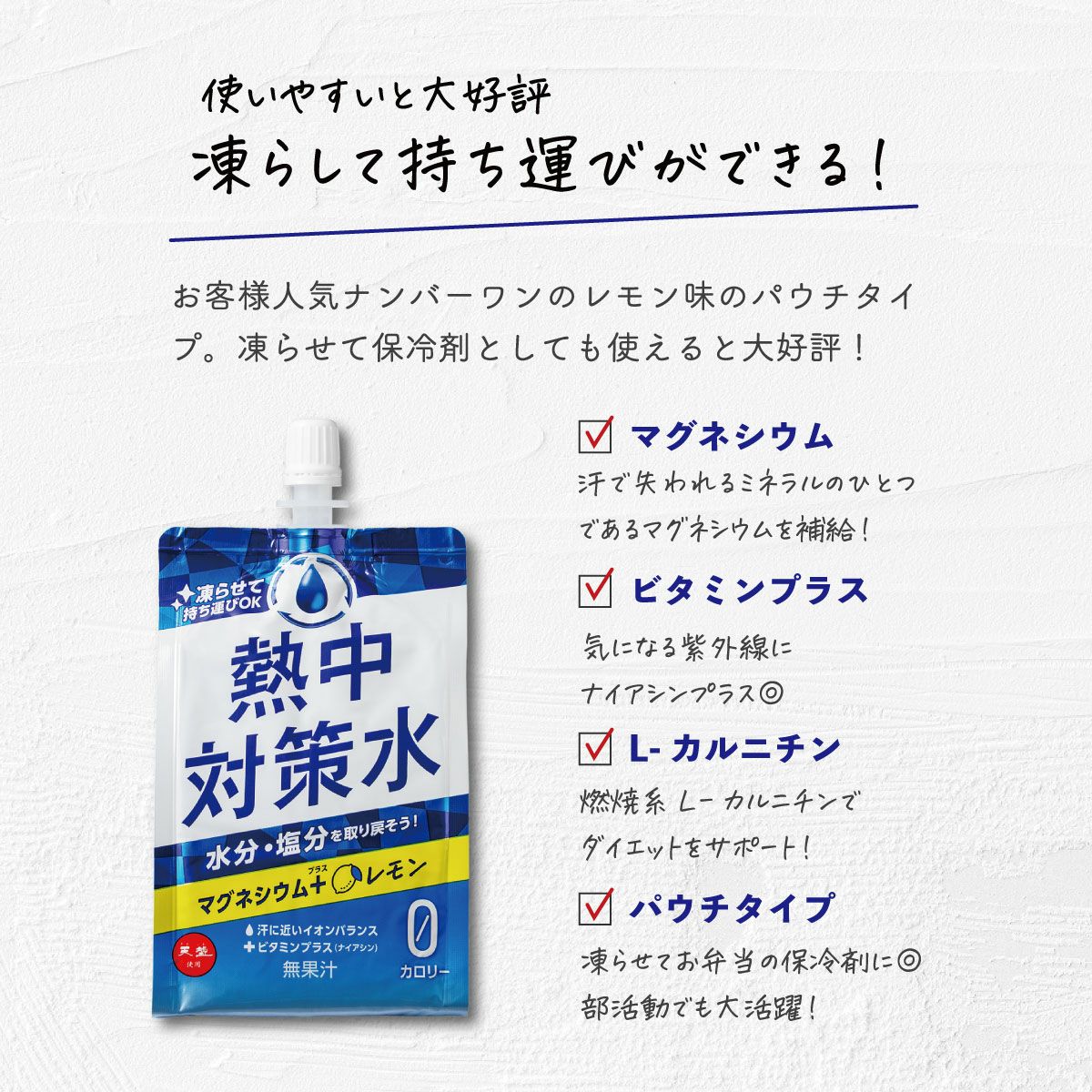 他の画像を見る 汗で失うイオンを補給 熱中対策ゼリー(ぶどう味) 150g×240個(10ケース) 送料無料 通常購入・定期購入 当店通常価格 ¥ 32,140 税込 在庫切れ 詳細を見る お気に入りに登録する