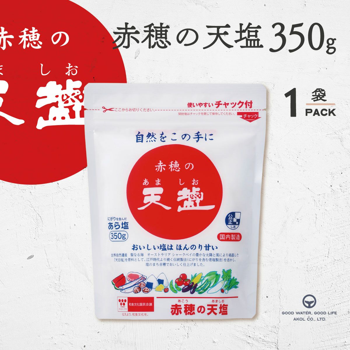 他の画像を見る 煮物・焼き物などお料理全般に! 赤穂の天塩(あましお) 500g(チャック付)×30袋 送料無料 通常購入・定期購入 当店通常価格 ¥ 8,010 税込 詳細を見る お気に入りに登録する